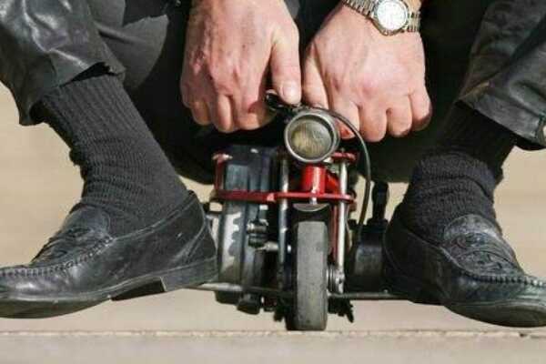 来自瑞典的汤姆·维贝尔格设计制造了世界上最小的摩托车,并给它取名为Smalltoe,据说它的整体高度仅6.5厘米,而单单一个前轮的直径就占到了1.6厘米,只比我们的手指甲大上一点而已,不过可别小看它,它还是能够被一个成年人驾驶的。