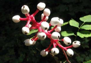 白色类叶升麻原产于美国的北部,它的茎秆都是血红色,因此配上苍白的果实非常的显眼和诡异,这种植物的果实一般都密集的生长在植物的顶部,由一根根血红色的枝条支撑着,整齐的排列在主枝干上,看起来就像是一串串圆圆的眼球,因此不禁让人心惊胆战,因此它也被列入了世界上最奇葩的十种植物之首。