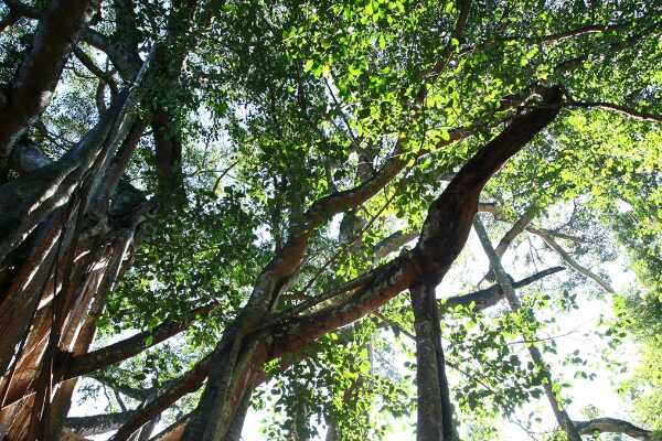 不仅如此,拥有世界上最大的树冠的孟加拉榕树,还有着强大旷阔的根系,据说一颗榕树最多可以拥有4千多根气根,远远的看起来就像是一整片树林,因为气根大多从枝干上向下生长,长到一定的粗细后,看起来就像是一大根树干,因此一颗榕树看起来就像是很多颗组成的,因此当地人也将它称为“独木林”,一棵树就是一片森林。