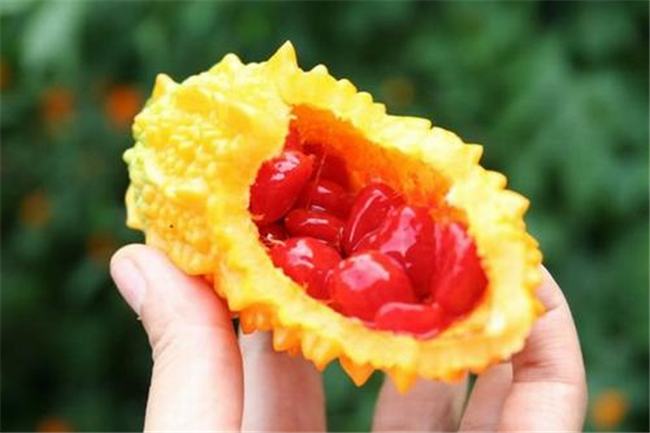 癞葡萄表面跟苦瓜长得十分类似,如果内心是橙黄色,那么味道就比较苦涩,如果内心是红色,那么味道就比较甘甜。