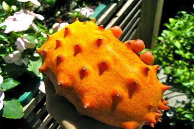 刺角瓜表面就如同一根狼牙棒一样,从口感上而言,刺角瓜的味道和普通的黄瓜有点类似,所以刺角瓜受到了人们的欢迎。
