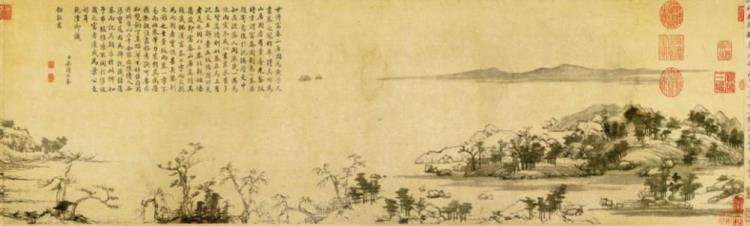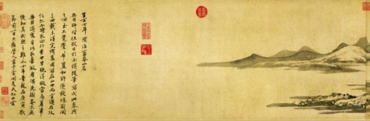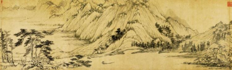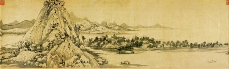 《富春山居图》是以浙江富春江为背景,画面用墨淡雅,山和水的布置疏密得当,墨色浓淡干湿并用,极富于变化。被誉为“画中之兰亭”。