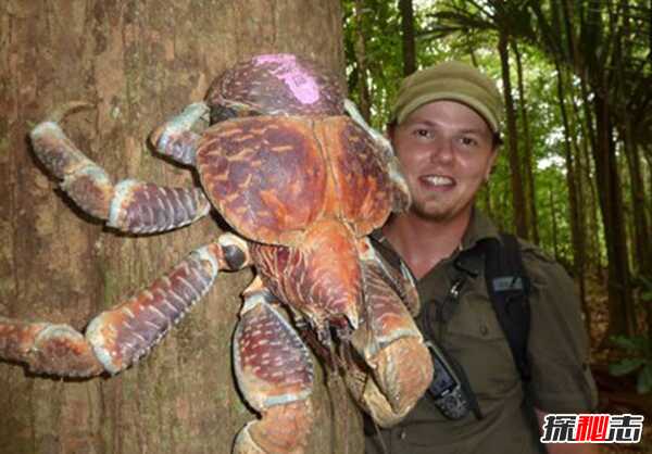 这些不可思议的生物长度可达一米,重达4公斤。它们在一生中不断成长,可以活到30-60岁,椰子蟹生活在位于印度洋和太平洋的热带小岛上。虽然它们大部分时间都在地面上,但这些螃蟹能够爬上33英尺高的棕榈树。它们能承受15英尺的高空坠落而不受任何伤害,吃各种各样的水果,包括椰子,但也吃其他小螃蟹。