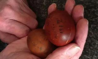但是由于当时的物资过于频繁,两位老人没有舍得吃掉这两个茶叶蛋,所以就一直把这两个茶叶蛋藏在家中,一直等到103年后,老人的女儿发现家里竟然藏着两个茶叶蛋,这两个茶叶蛋表面特别的黑,和普通的巧克力蛋没有区别,而且老人的女儿在茶叶蛋上还发现了自己母亲以及姨母刻下来的名字和日期,来表明他们对复活节的尊敬,这个茶叶蛋也成为了这个家族最美好的回忆。