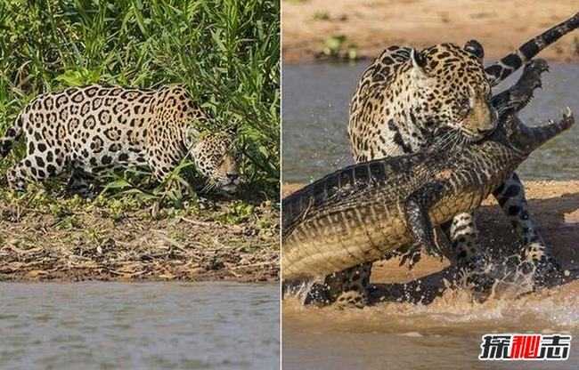 美洲豹:美洲豹的攻击方法是偷袭,基本上只要捉住猎物就会向猎物的太阳穴一口要下去。能够一击毙命,最小的减小了猎食受伤的机会。