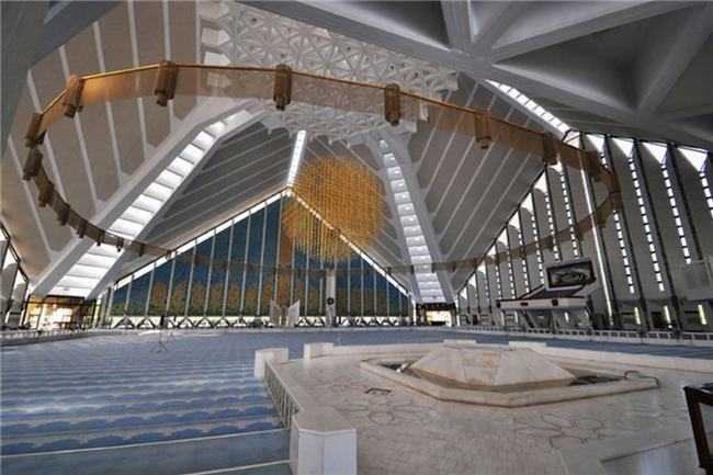 费萨尔清真寺的设计以及地址的选择都很有特点,远处就能够看到这个清真寺的塔尖,并且高耸入云,在最顶部以金色为主,给人的感觉就像是一轮新月,与太阳相互呼应,这个清真寺的建筑简直就是大师手笔。