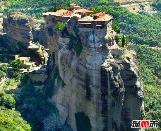 希腊中部地区有一派奇特的景观,数十座20~400米高低不等的柱形垂直岩石群拔地而起,建造在陡峭岩石顶上的24座修道院仿佛悬浮在空中。虔诚的修道士们在此过着与世隔绝的戒律严格的修行生活,直到20世纪初修道院还是靠绳梯和吊车与外界相通。这些修道院是14~16世纪为避免战乱和抵御土耳其人而建造的,目前仍有6座修道院在使用之中。被称为世界边缘的六大神秘古迹之一。