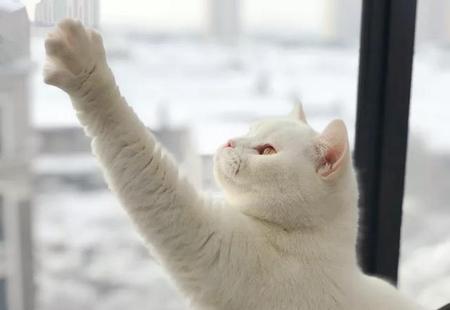 拍这张照片时窗外正在下雪,猫咪第一次看到雪花飞舞觉得很开心,不由自主伸出了小爪想要去接住,刚好我一直在旁边,就拍下来了它可爱的瞬间。