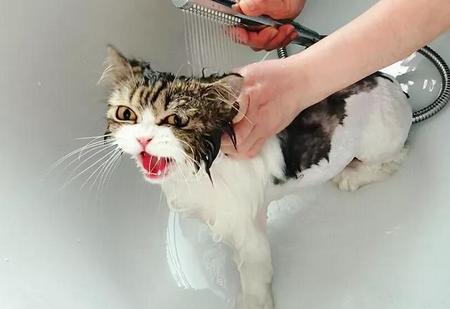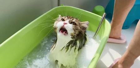 当时是我姐姐在给牛牛洗澡,而我在围观,眼看着毛茸茸的猫球洗着洗着就缩水了,这么有趣的画面肯定不会放过啦!