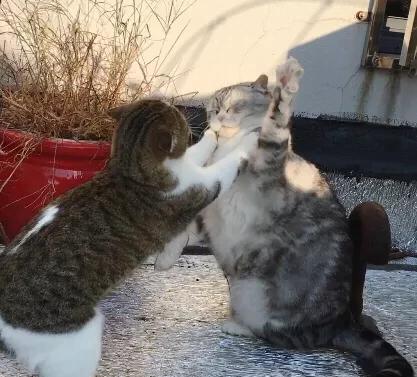 猫咪多的家庭总是冲突不断!鹿鹿和大头本来是相亲相爱的兄妹俩,却为了吃个草动起手来!刚好拍到了哥哥被挠脸的瞬间,也是很有意思的。