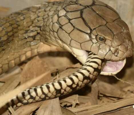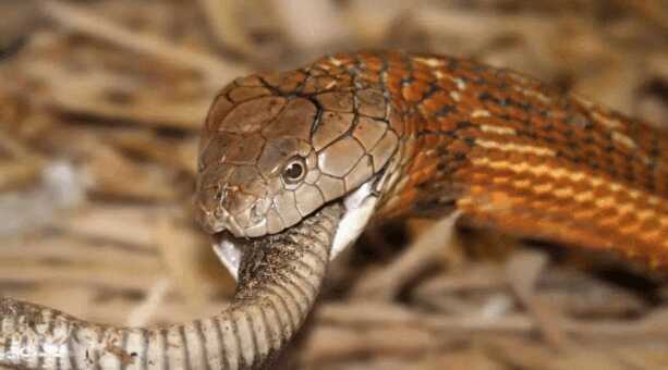 当注射毒液时,蛇会压缩毒液囊,毒素会迅速破坏猎物的身体组织,麻痹并已经开始消化猎物。眼镜王蛇就像其他的蛇一样,可吞噬比自己头部还要大的猎物,但眼镜王蛇绝大部分的猎物,都是直径比自己细小的鼠蛇。