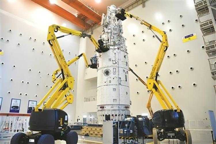 发射前,科研人员正在测试问天实验舱。图片由航天科技集团五院提供