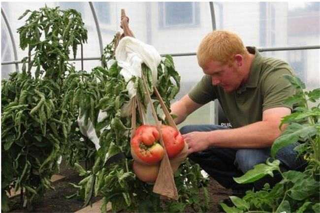 经过自己的不断研究,不断地进行养分的灌输和水资源的补充,他夜以继日的在自己的实验田上进行反复的实验,最终看见自己的一个番茄在不断的成长,刚开始的时候他可以使用一些小布条或者皮筋,让番茄不落在地上,后来她不得不用自己妻子的丝袜,将番茄完美的兜住,防止番茄落在地上最后腐烂掉,当这一位美国的番茄种植者发现自己的番茄已经成熟完毕之后,他迫不及待地拿来秤称了一下,最后他发现这个番茄重量超过了八斤。