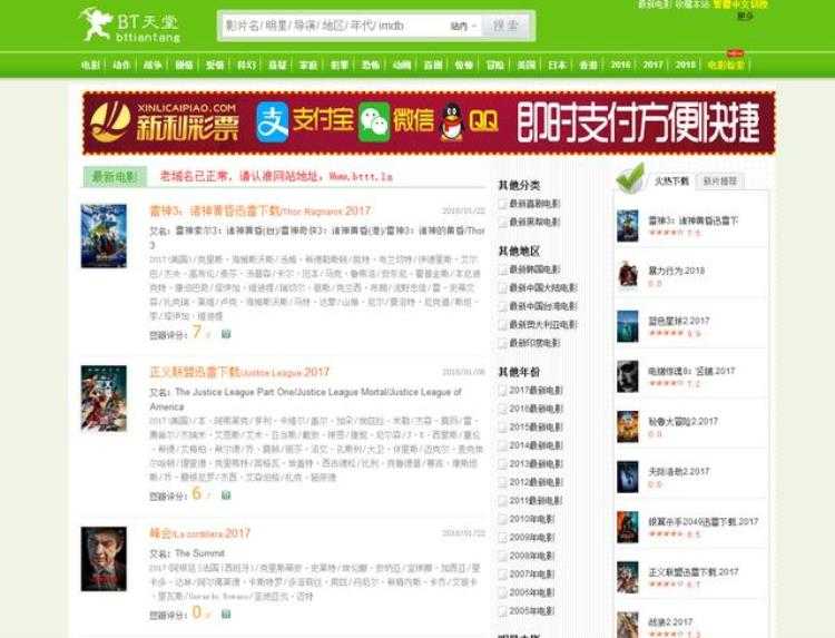 第五:BT天堂https://www.bttt.la/ 一个专业的电影搜索网站,它支持各种高清资源下载。几乎每天都会更新新电影,所以不怕没有电影看。而且每个电影有多个下载地址,它默认是使用迅雷下载的。