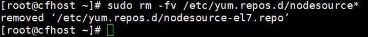 这种情况,输入命令sudo rm -fv /etc/yum.repos.d/nodesource*(命令解释:管理员权限使用rm命令删除/etc/yum.repos.d目录下前缀为nodesource的所有文件)
