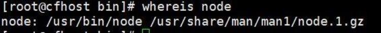输入命令whereis node(命令解释:查找node所在位置,默认在bin中)