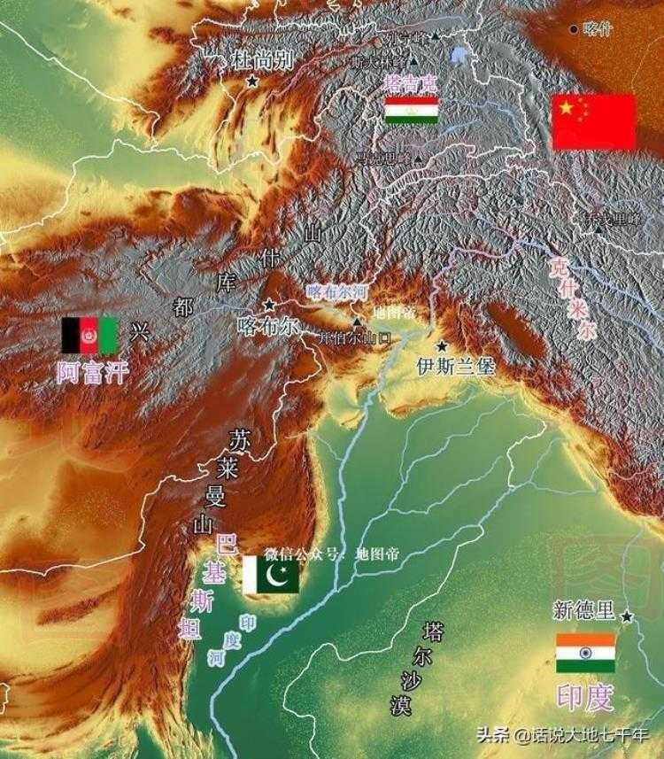 帕米尔高原向西南延伸,形成了兴都库什山,这是阿富汗的主要山脉,而兴杜库什山脉以南,是苏莱曼山脉,这是伊朗高原与印度次大陆的分界。