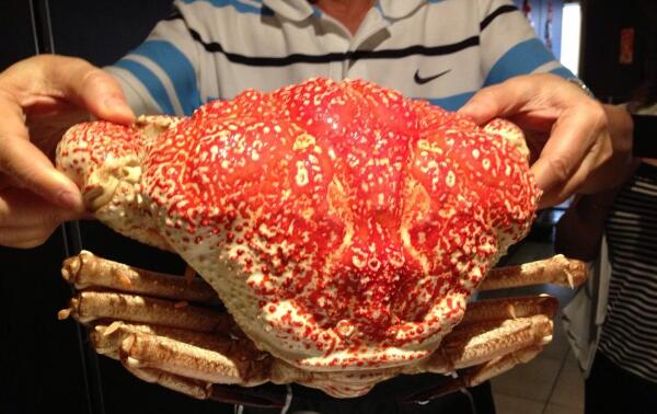澳洲皇帝蟹也叫巨大拟滨蟹,是生活在澳大利亚巴斯海峡的一种巨型蟹类,因为肉质鲜嫩可口,营养价值极高,所以价格也很惊人。一只普通的澳洲皇帝蟹价格在几千元甚至几万元,如果是72斤的澳洲皇帝蟹,那绝对开出天价,而且可遇而不可求。