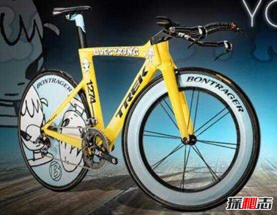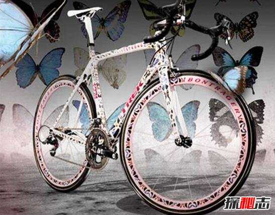 蝴蝶Trek Madone是当之无愧全球最贵自行车,这辆碳纤维自行车不仅是全球唯一一名七连冠冠军的坐骑,还由艺术家戴米恩·赫斯特进行设计,车框上装饰的是闪闪发光、货真价实的蝴蝶翅膀透明涂层。善待动物组织将这辆自行车描述成“可怕的野蛮行径”。这或许是历史上最昂贵的自行车。