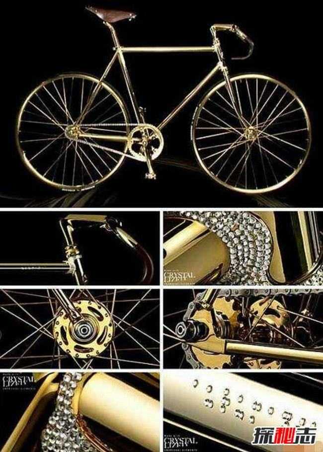 法国公司Aurumania生产的是闪亮亮的自行车产品:水晶版黄金自行车售价101,000美元(66万RMB),拥有镀金车身框架、轮胎和轮辐,另有600颗施华洛世奇水晶。如果有谁怀疑这辆自行车不过是个标榜其高尚地位的标志的话,Aurumania还出售价格在6,000美元左右的镀金支架自行车。