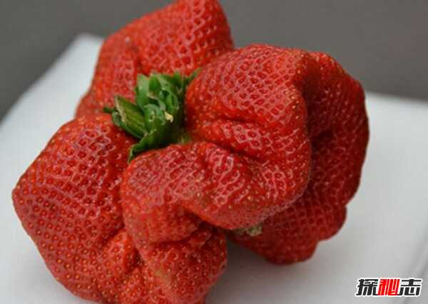 这颗巨大草莓已经打破了世界记录,目前为止获得了吉尼斯最大草莓认证。我们仔细看下这颗世界上最大的草莓,是不是被它的长相给吓到了:真的是太丑了!完全不符合我们心目中草莓的长相,像是一个畸形草莓。