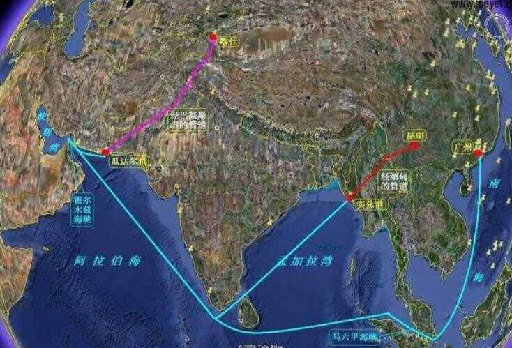 马六甲海峡是连接中日韩的运输通道,也是最主要的海上航线,全长1080千米,最宽370千米,沟通了太平洋和印度洋的国际水道。