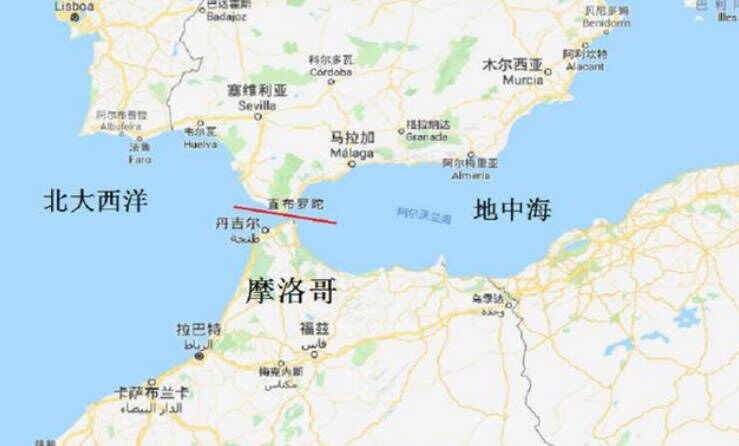 直布罗陀海峡位于西班牙和摩洛哥之间,将北大西洋和地中海分隔开,该海峡最窄的地方约为14.3公里,水深平均300米。