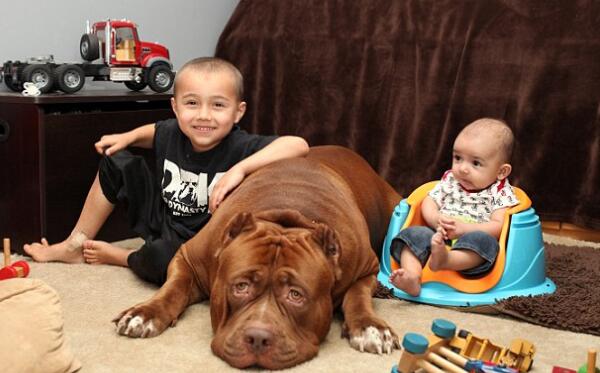 世界最大斗牛犬,浩克(18月大体重160斤/会照顾小婴儿)