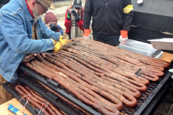 等到整根超级香肠都制作完成后,厨师就会将香肠拖到中心广场上,这时按照传统习俗,香肠的第一口是要给狗吃的,之后周围的居民就会开始争相购买,所以这根超级香肠也并没有浪费。据说在2004年制作的那根超级香肠仅仅只比2015年的这根短上11米而已,03年的那根更是只差一米。