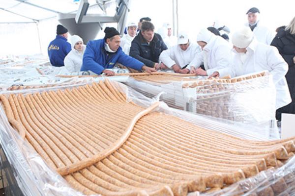 而这一次制作香肠的地点就位于塞尔维亚首都贝尔格莱德以北100公里的小镇上,几乎每年的香肠节都是在这里庆祝的。为了这根超级香肠能够摆放的更加安全整齐,厨师们还特制了一套巨型餐盘,当厨师将香肠灌好后就将香肠整齐的排列在盘中,不过香肠实在太多了,以至于即便是折叠起来,也依然摆满了三四米长的餐盘。