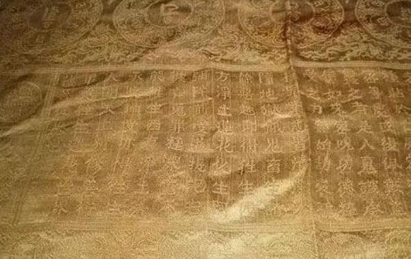 织金陀罗尼经被,用明黄缎捻金织成,织有陀罗尼经文2.5万字,经被上还缀有820粒珍珠,在慈禧死后,该被子就裹在慈禧身上。据说,盗墓者拆走珍珠后,就将这条价值连城的经被弃之于地,直到1979年清理地宫时才被发现。而盗墓者不知道的是,织金陀罗尼经被造价高达16万两白银,不知道他们知道后心情如何。