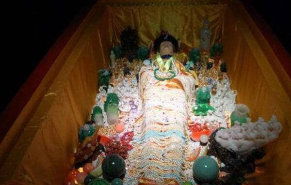 在世界十大稀世珍宝中,慈禧墓中的就占一半,其中最有价值的是慈禧的凤冠。凤冠上有九只凤凰,每只凤凰的嘴上,各叼着一颗珍贵的“夜明珠”。每颗“夜明珠”足有“龙眼葡萄”那种大小,在暗处能发出道道白光,放在明处又恢复原状。在市场上,凤冠上9颗夜明珠,每颗估值6亿,如今还有4颗没找到。