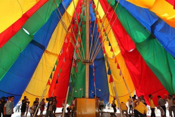 想要制造出如此硕大的伞,当然和世界上最大的金戒指一样,需要耗费大量的人力物力,单单是这把超级大伞的伞柄就由直径为18厘米的无缝钢管制成,而骨架采用的也是镀锌钢钢管,足足有16根之多,还用了254.8平方米的牛津布来做伞面,制作了足足三层才能支撑住如此粗壮的钢管骨架。