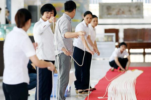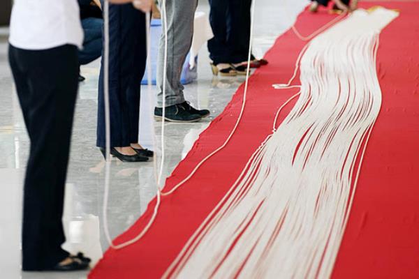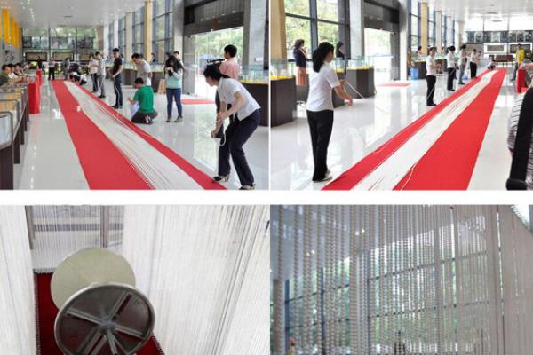 据吉尼斯世界记录的报道可知,这条世界上最长的珍珠项链全长可达2278.5米,在宽敞的南珠文化厅中折叠了数十个来回才能顺利的摆放在红毯上,据说单单是整理这堆珍珠就花费了工作人员两个多小时的时间,而制作的时间就更久了,8个工作人员连续长达半年的手工制作才顺利完成这个挑战。