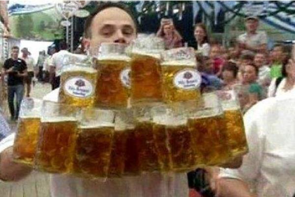 餐厅服务员奥利弗·斯特鲁安普费尔曾经拿出自己的看家本领,一口气端起了27杯1升多的啤酒,要知道这些啤酒的重量高达60公斤,而即便是这样他还坚持走了40米。