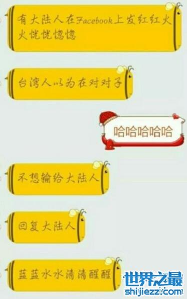 而真正让红红火火恍恍惚惚让人开始觉得有意思的,则是这样的一个梗:有的网友在facebook上发了一句红红火火恍恍惚惚,有的台湾网友以为是对对子,于是就回复了一句:“蓝蓝水水清清醒醒”。