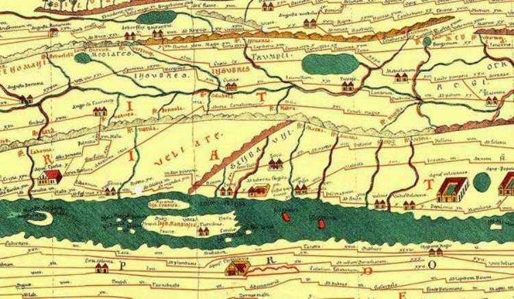 学者们也认为,这幅地图是古罗马帝国的公路图,地图上绘出了从大西洋到现代斯里兰卡的所有主要道路,每条道路上都有许多间隔符号,每一段代表一天的路程。地图上还标出了550座城市以及3500个有名字的地标。