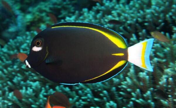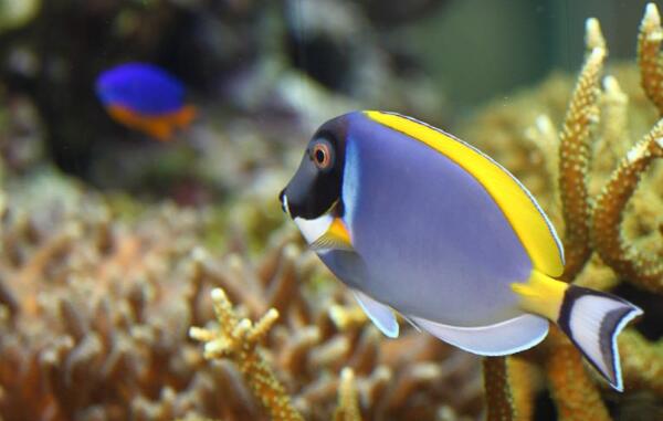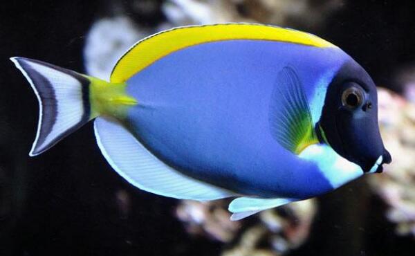 刺尾鱼大多都有五彩斑斓的颜色,但白胸刺尾鱼是最亮眼的,它全身粉蓝色或浅蓝色,背鳍鲜黄色或浅蓝色,臀鳍浅蓝色,整体颜色虽然不多,但极其鲜艳,让人看了刺眼,所以被称为世界上最亮眼的观赏鱼。白胸刺尾鱼是鲈形目刺尾鱼科、刺尾鱼属,为一类近海活动的热带海水鱼类。