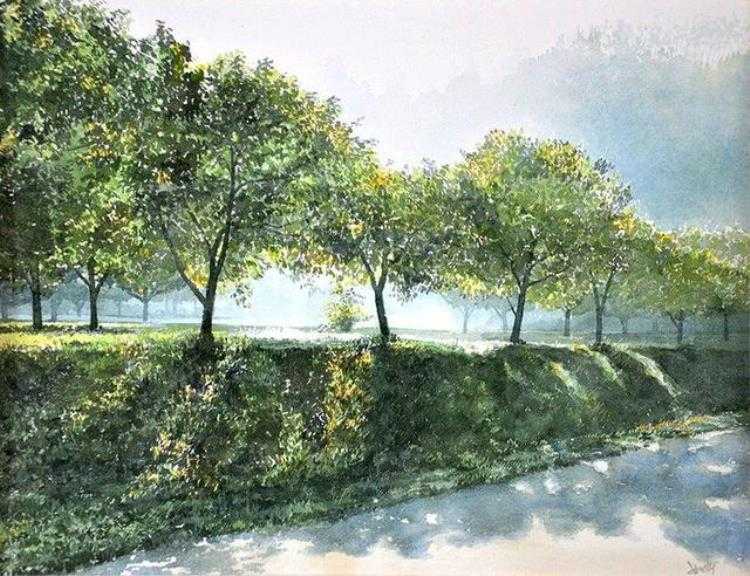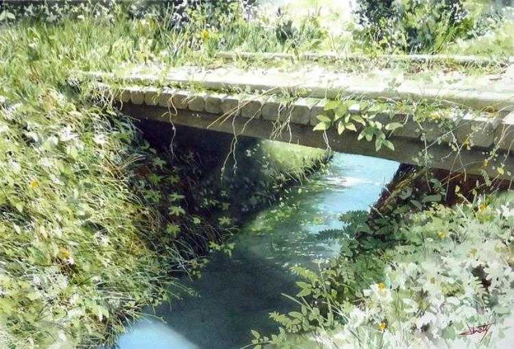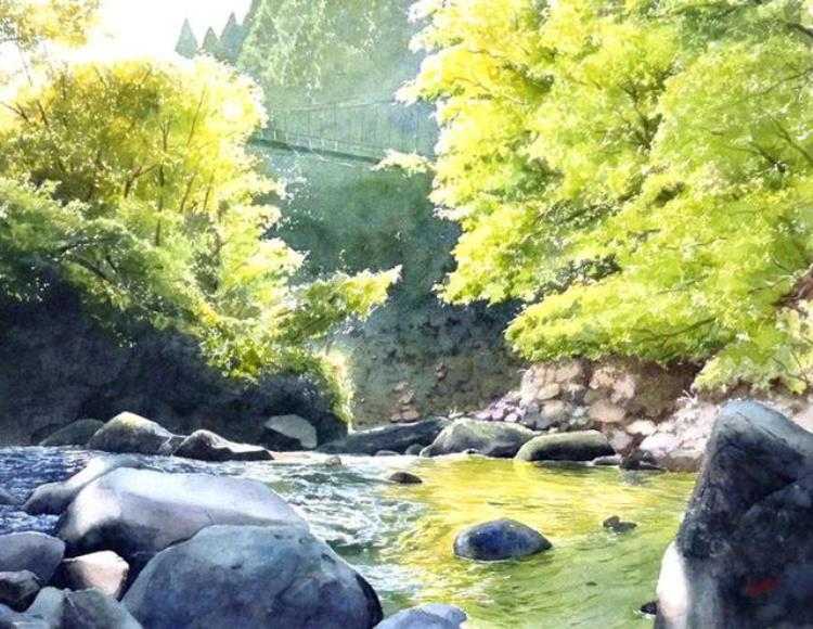 水彩画是绘画种类中的轻武器,历史悠久其表现力虽然不像油画那么凝重但有其不可替代的优势,方便快捷。日本阿部俊的水彩画我十分喜欢,他取的景都是我们身边不起眼的风景,但在他的笔下都呈现了动感和生命力,技巧是一方面,画家观察事物的仔细和独特的表现力很值得画水彩画和其他画种人士的借鉴。——池兴敏