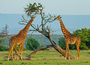 长颈鹿是南非的国兽,生长的非洲的热带和亚热带地区,干旱草原地带以及半沙漠地带都可以看见它们的身影,虽然长颈鹿生活在温度比较高的地方,不过它们修长的脖子和腿可以帮助降温。长颈鹿是一种草食动物,主要以树叶以及小树枝为食。目前西非的的长颈鹿几乎消失了,在动物园的长颈鹿寿命会长一些。