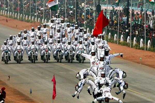 相信印度三哥的传统艺能,大家都是见识过的,即便是火车他们也要满满当当的挂满乘客,即便是阅兵式上也不例外,不仅有摩托车上叠罗汉,甚至还有钻火圈,与其说是阅兵式,更像是在举办一场杂技表演,据说他们最强的一辆摩托车上能载下60个人,简直堪比六个足球队。