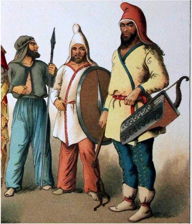公元前5世纪,阿里亚人加入薛西斯二世的远征大军,跨过达达尼尔海峡进入欧洲作战。他们与临近的帕提亚人、花剌子模人和索格底亚纳人一样,身着带有蛮族背景的巴克特里亚服饰。在纳克希-伊-鲁斯塔姆及波斯波利斯附近出土的波斯王陵雕塑图案,也反映出阿里亚人身着典型的斯基泰游牧服饰(如束腰皮衣皮裤和高脚靴)。说明在至少当时,阿里亚土著有比较明显的中亚草原起源。