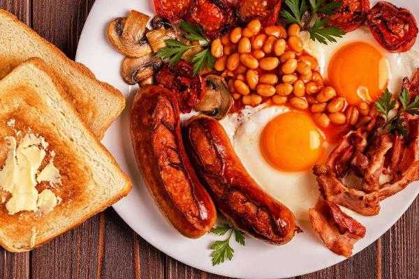 英式早餐的热量一般都比较高,基本上必有香肠、熏肉、鸡蛋,蔬菜则大多会选择番茄和蘑菇等,主食则是烘烤后的一到两片白吐司,不过英国作为欧洲最爱喝茶的国家,他们在早上也会来上一杯早参茶,基本上就是各种红茶混合调配,喝上一杯精神百倍。
