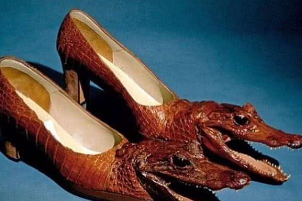 这双鞋可是真正的“鳄鱼”皮鞋,不仅整个鞋面都是鳄鱼皮的纹路,就连鞋头也设计成了鳄鱼嘴,不过看起来有点过于逼真吓人,走在街上肯定回头率超高,真不愧是世界上最奇葩另类的鞋子。