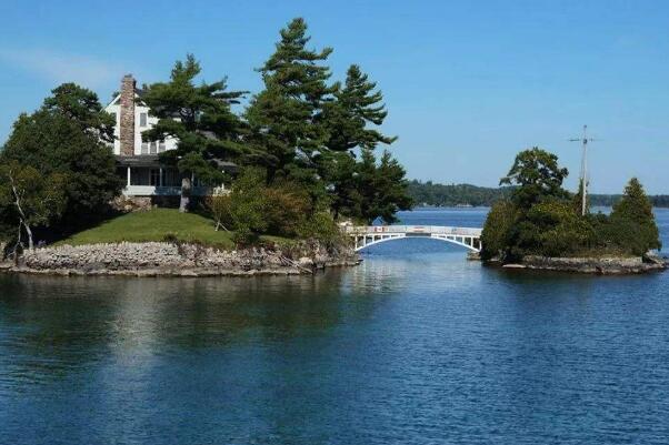 世界上最短的跨国桥梁叫做扎维康桥,它位于美国和加拿大之间的千岛湖上。在它左边的那个岛屿属于加拿大,右边那个岛屿则是美国的岛屿。这座桥的长度不到10米,是一位买下了两座岛屿的富豪为了建造别墅而修建的桥梁。