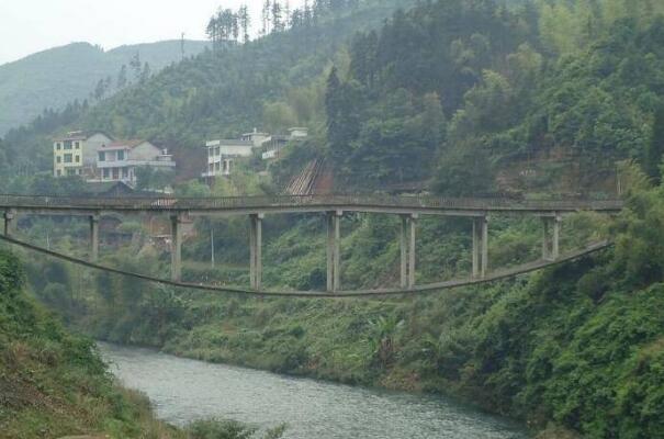 最怪的桥是中国的淘金大桥,位于我国湖南省洞口县。这座桥是独一无二的,因为它没有桥墩也没有支撑。整个桥梁是悬空在河流上的。当时设计师这样设计是为了施工方便和省材料,与此同时整个桥看起来还非常的美观。