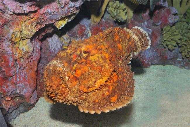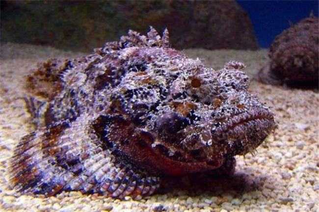 毒鲉是世界上最丑陋最毒的鱼,它的外貌非常丑陋,长约三十到四十厘米,全身粗糙没有一点鳞片所以显得坑坑洼洼的,背部的鱼鳍长短不一且具有毒刺,毒刺数目大概十二到十四根,每一根都是非常的锐利,眼球和下颌部位较为突出,下颌部的牙齿细小,毒腺分布在头部的棘突上和鳍棘的基底部。毒鲉从外形来看真是丑到家了,虽然说肉质鲜美,但是不少人看着它的样子就瞬间没有下嘴的欲望了。