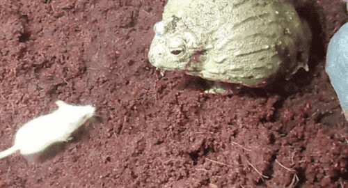 一般的青蛙都有一个长长的舌头,但是非洲牛蛙的舌头却又短又宽,看看上面这张图你就明白。所以非洲牛蛙并不是靠舌头来捕食的,而是直接跳出去一口将猎物咬住并吞食,这也是它们能够捕食较大的动物的原因,舌头可拽不住大家伙,还得靠自己。