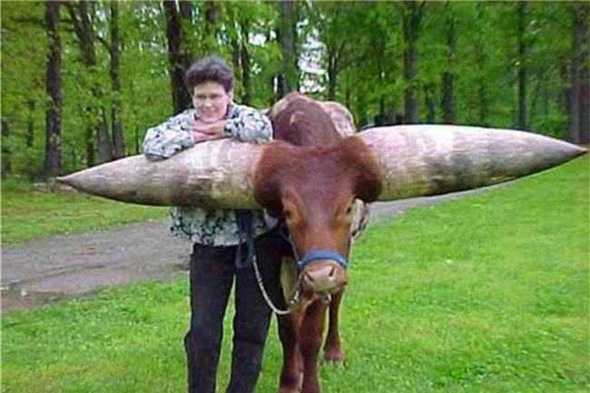 世界上牛角最大的牛,虽然牛角非常的大,但是性格非常的温顺,在日常生活中据主人介绍还总是被其他的动物欺负,这种牛比其他的奶牛大好多,尤其是头上的角更像是两个超级大的胡萝卜,虽然这样的牛角在外人看起来非常的震撼震惊,但是这也成为了牛行动的负担,走起路来身体很难保持平衡,不过这样的牛由于它的角非常的惊奇,也带来了很多的游客给农场老板增加了很多的收入。
