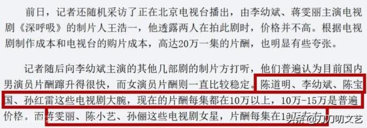 而陈道明、孙红雷、李幼斌、陈宝国,比女演员略高,也只是每集10万-15万元左右。